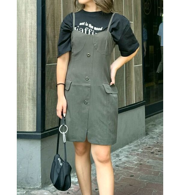 ジャケットをリメイクしたようなデザインのミニワンピースです。肩紐で丈感の調節ができるので、幅広い身長の方に着用して頂けます。1枚でも、インナーにTシャ.. |