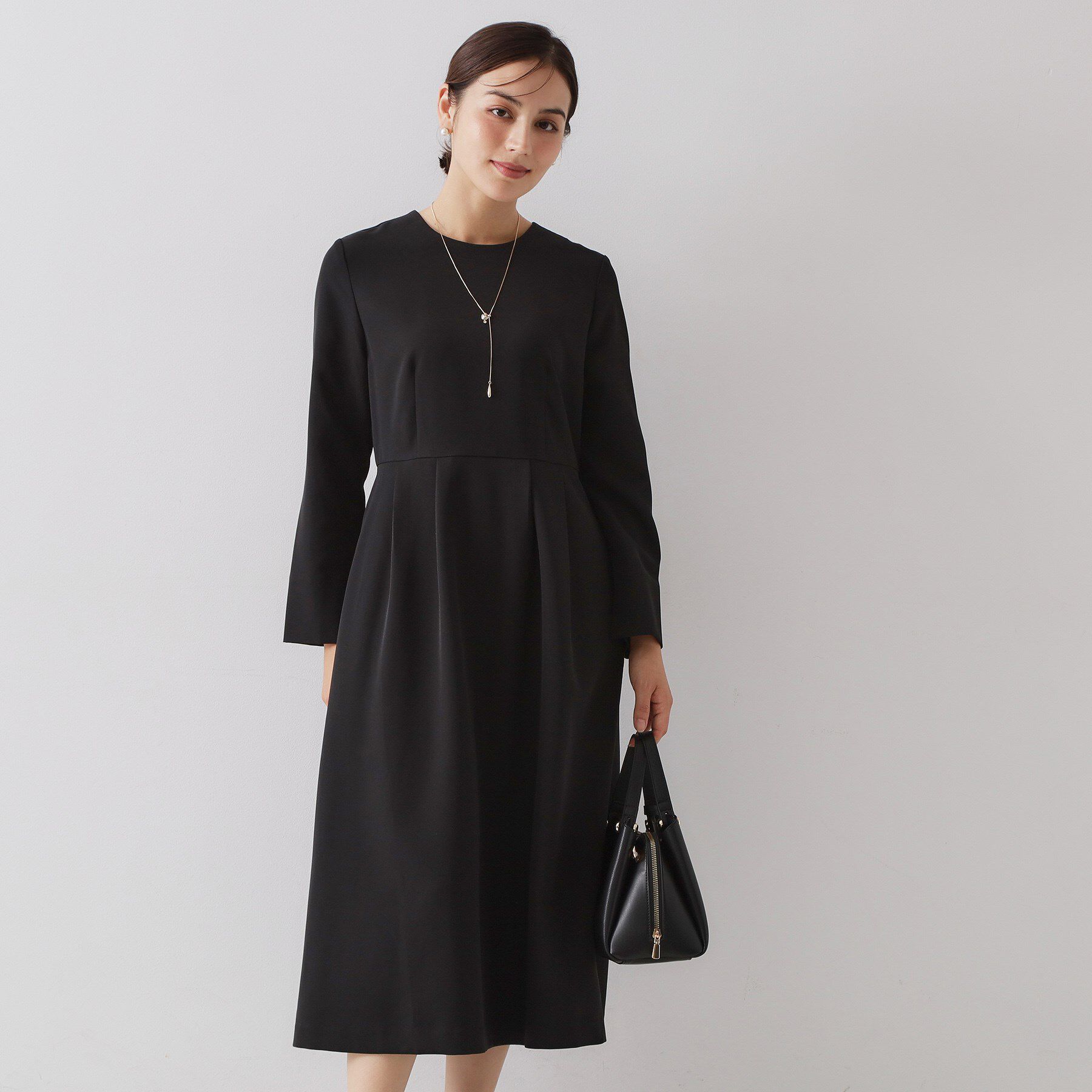 【オペークドットクリップ/OPAQUE.CLIP】 ≪通勤・セレモニー対応≫フィットアンドフレアワンピースダブルクロス【洗濯機OK】