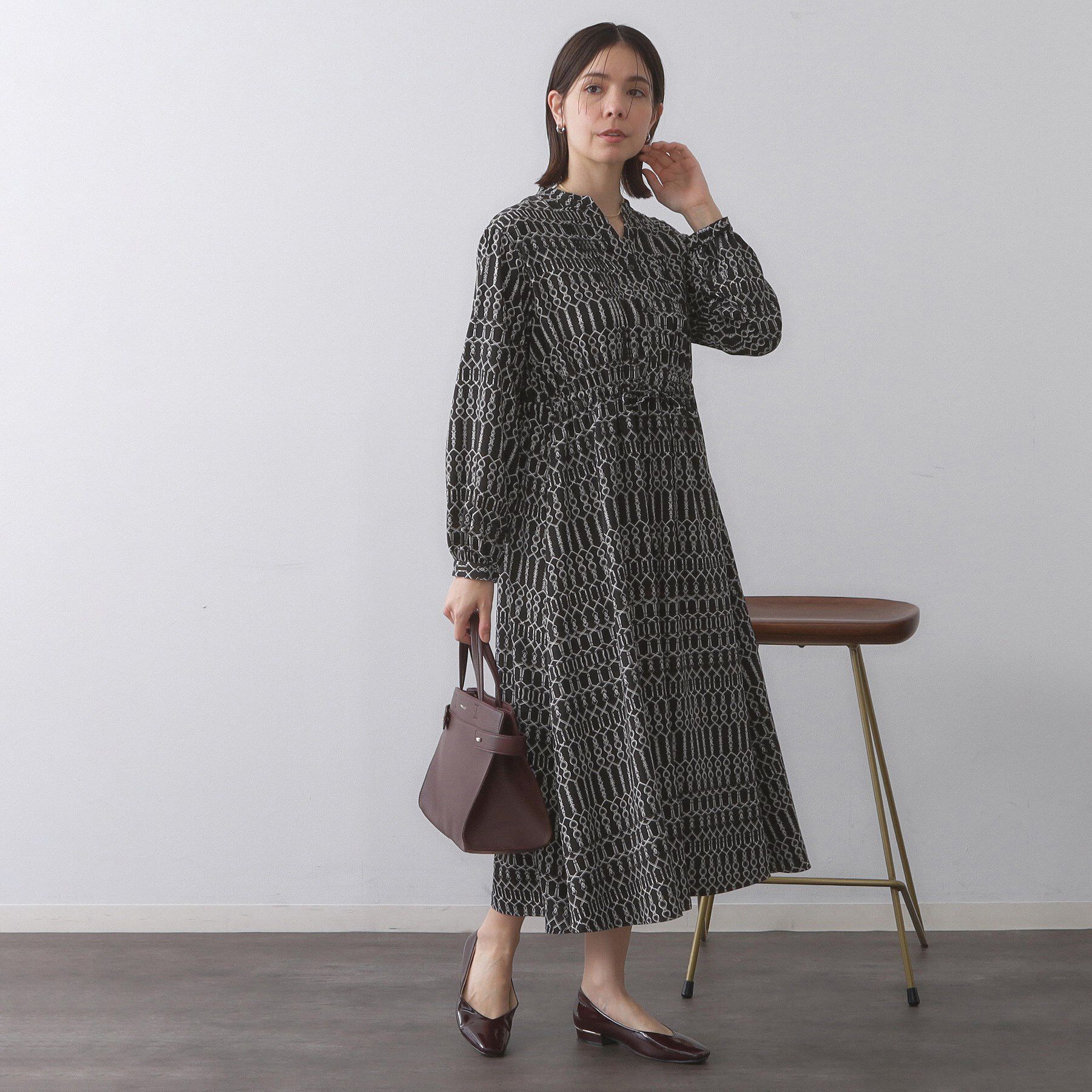 【オペークドットクリップ/OPAQUE.CLIP】 ジオメトリック柄ワンピース