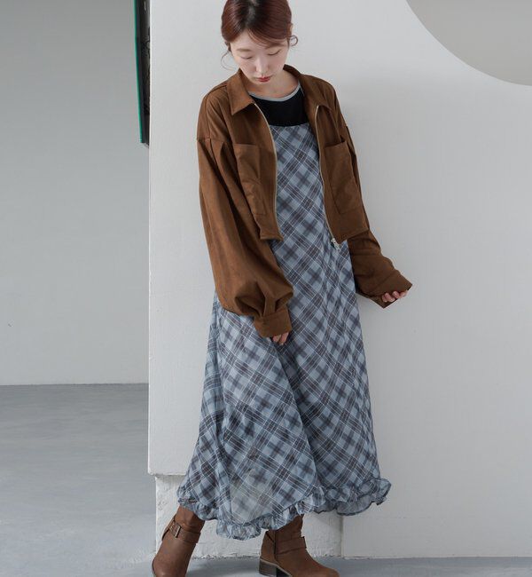 【カスタネ/Kastane】 【肩紐調節可/裏地付き】シアーチェックアシメワンピース