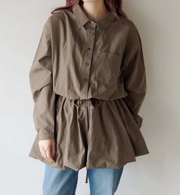 ふんわりバルーンシルエットが目を惹く、着映えシャツワンピ ■デザイン シャツデザインに、ふんわりと丸みのあるバルーンシルエットを落とし込んだシャツワン.. |