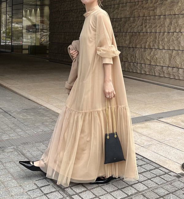 【カプリシュ レマージュ/CAPRICIEUX LE'MAGE】 【オケージョン/サイズ展開あり/人気につき再販】チュールハイネックワンピース