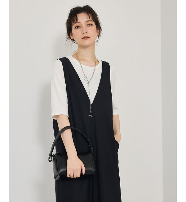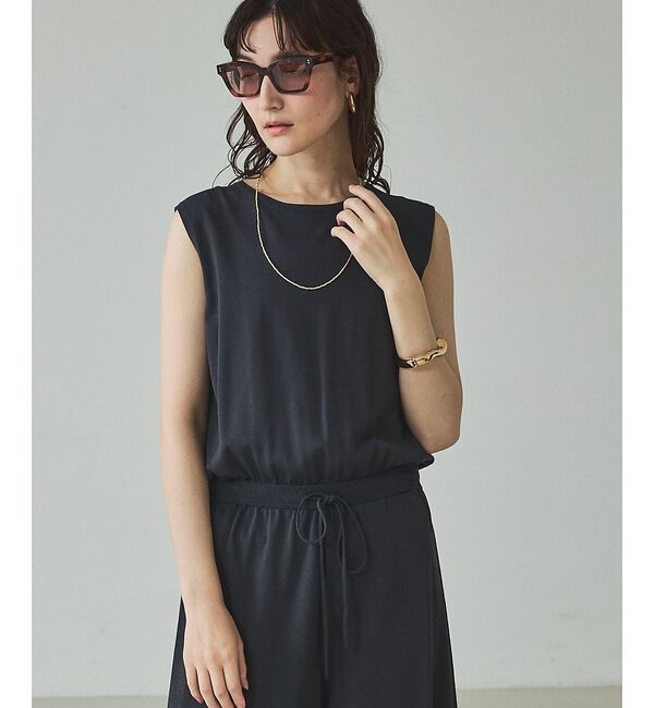 *Detail*とろみ素材がニュアンスを出してくれるオールインワン。アセテートの様な上品な光沢あるリサイクルポリエステルを使用した素材。すっきりとIラインに.. |