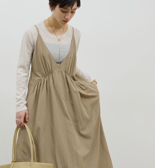 \体型を選ばずに着られる万能シルエット/ 深めのネックデザインがポイントのキャミソールワンピ ●すとんと落ち感があり、ワイドな身幅なのに自然に華奢見.. |