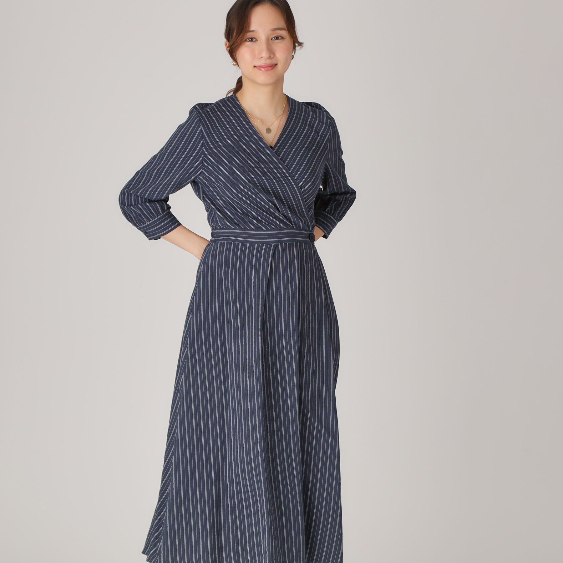 【クード シャンス/COUP DE CHANCE】 【洗える】ストライプ柄 カシュクールワンピース