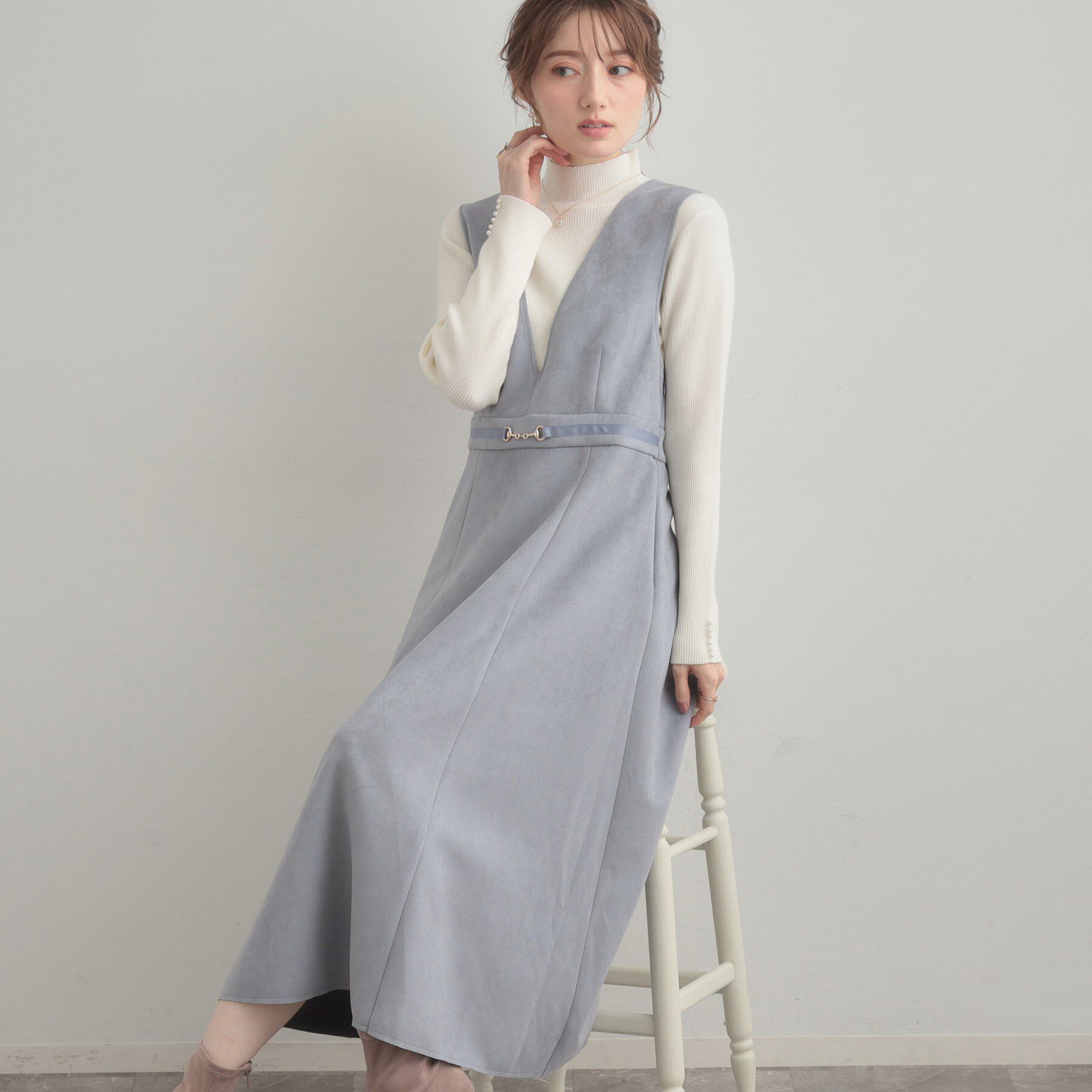 定番のスエード調ダンボール素材を使用したデザインジャンスカ〜POINT〜今年はウエスト部分にゴールドビットパーツをあしらったワンポイントデザインに◎【素材.. |