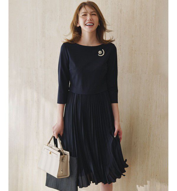 【クミキョク/組曲】 【KUMIKYOKU NAVY】ジャージーコンビプリーツ ワンピース
