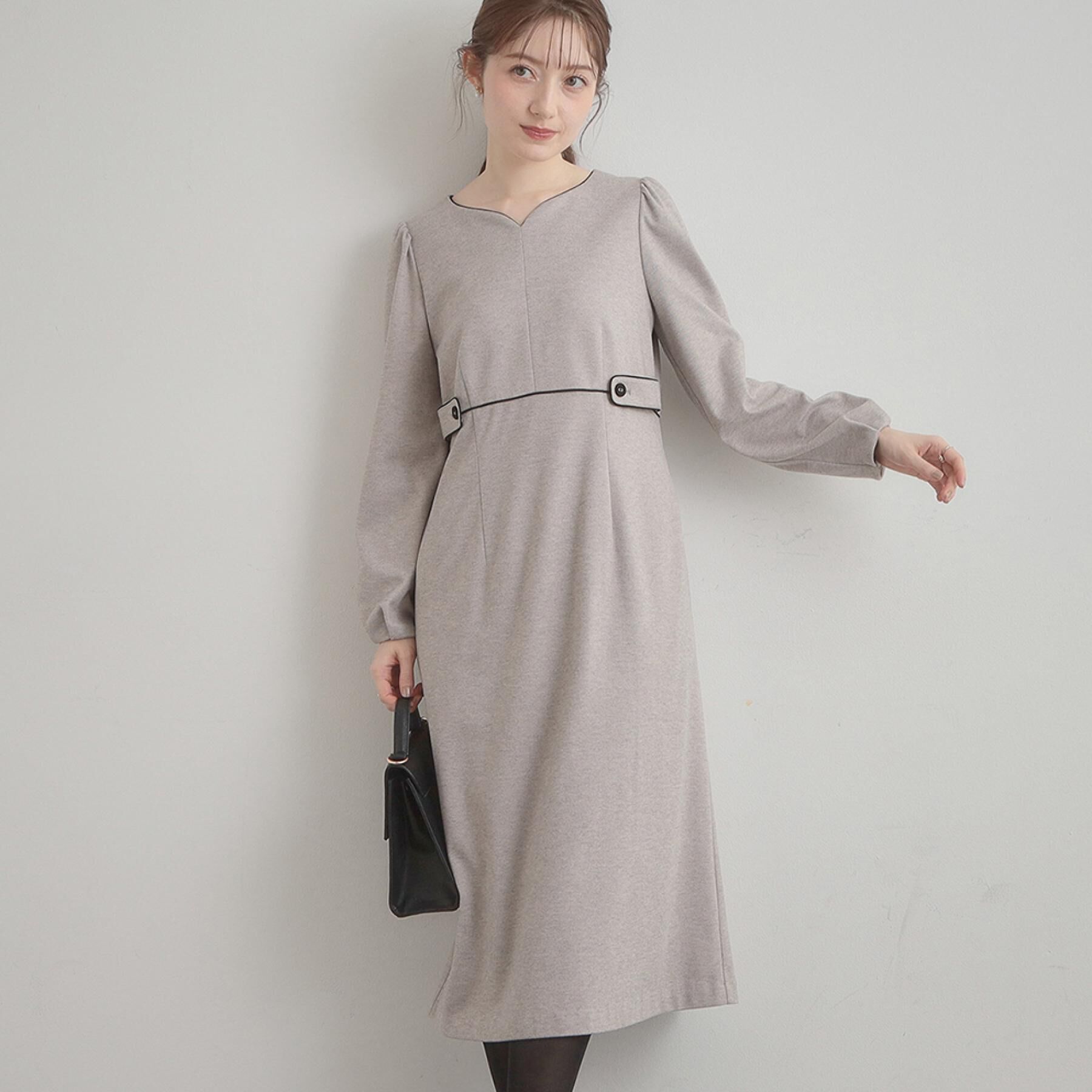 Aラインシルエットのワンピースです〜POINT〜配色のパイピング・釦がアクセントになっています!高めのウエスト切り替えがスタイルよく見えます◎・後ろファス.. |