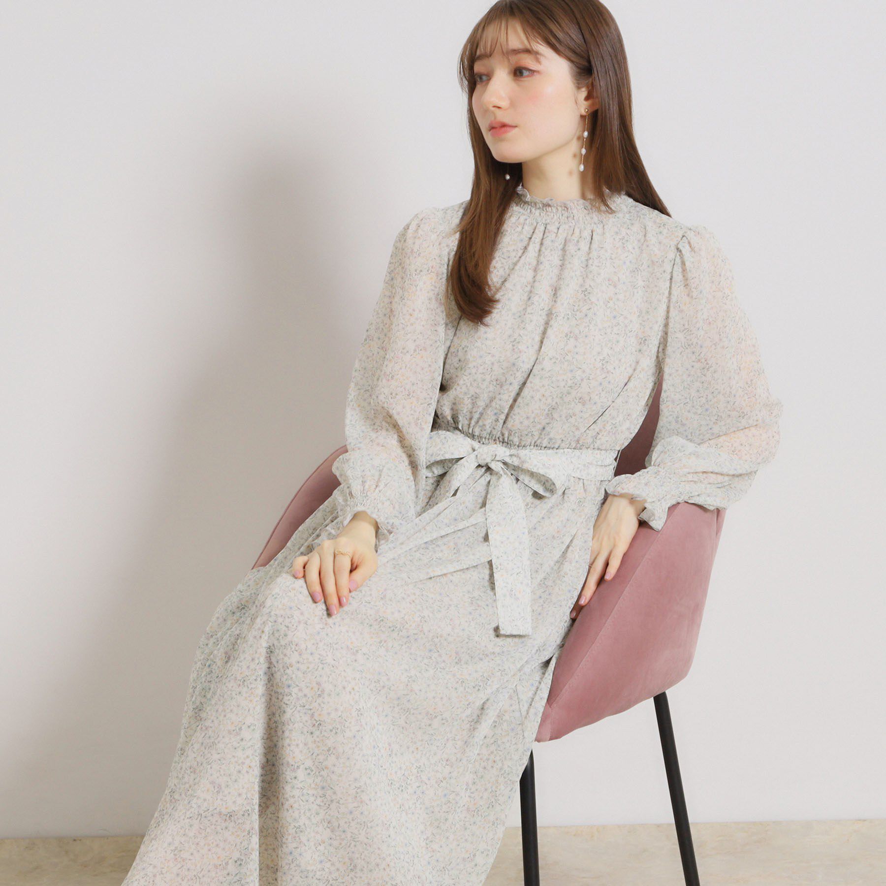 【クチュール ブローチ/Couture brooch】 【洗える・着映え】楊柳小花シャーリングワンピース