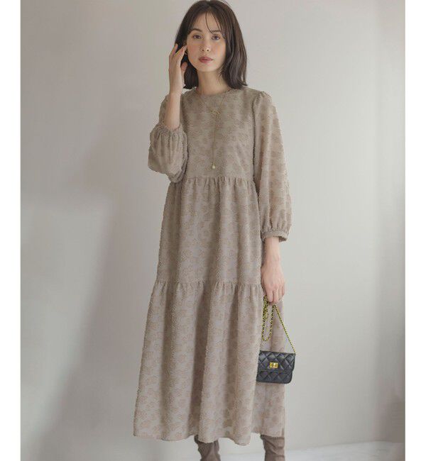 ふんわりしたシルエットで大人の甘さと品のよさを纏う、特別感あるワンピース■デザイン透け感のあるフラワーモチーフのカットジャカード素材と、ふんわりした.. |