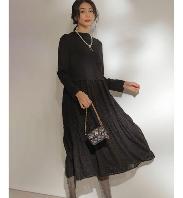 素材感にもこだわった、プルオーバー×スカート見えするドッキングワンピース■デザイン・ボトルネックの長袖のプルオーバーとへアリーな布帛のティアードのスカ.. |