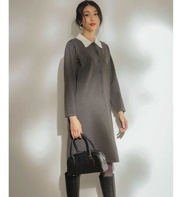 キレイめにもカジュアルにも着こなし可能!洗練された大人のニットワンピース■デザイン・ニットで編み立てた襟が端正なワンピースは、ルーズフィットなストレ.. |