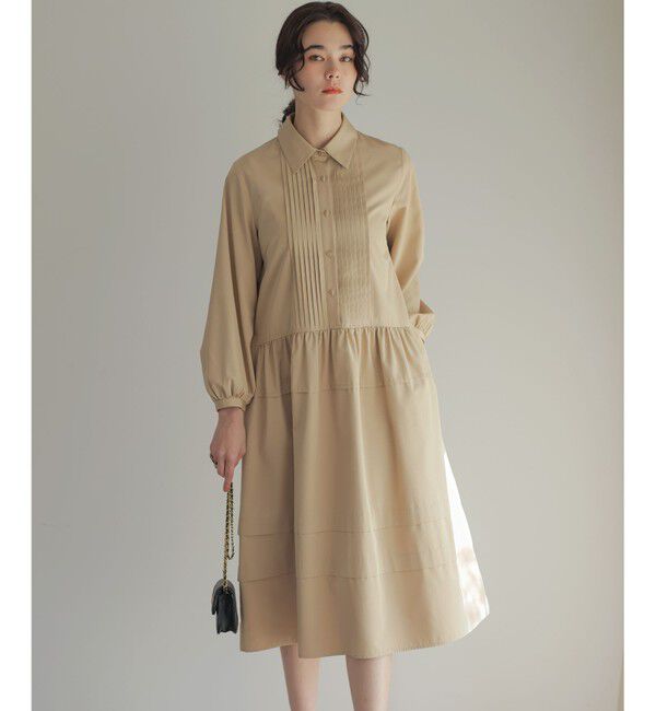 ピンタックデザインが上品な大人のフェミニンワンピース■デザイン・フロントのピンタックデザインが縦のラインを強調し甘めのデザインを引き締めています。・.. |
