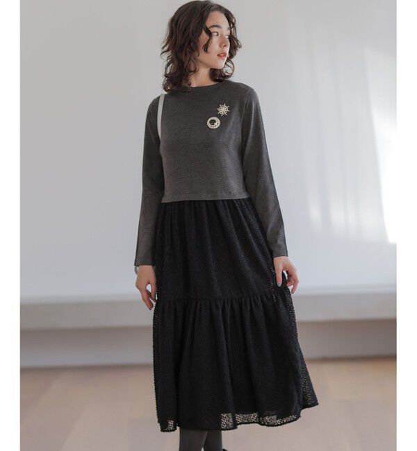 【クミキョク/組曲】 レースライク襟付きニットワンピース