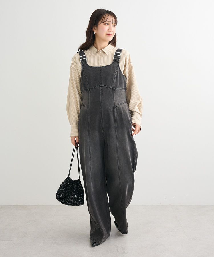 お持ちのトップスと合わせるだけでスタイリングが完成するデニムオールインワン。バスト下や縦の切り替えラインですっきりと自然なスタイルアップが叶うデザイ.. |