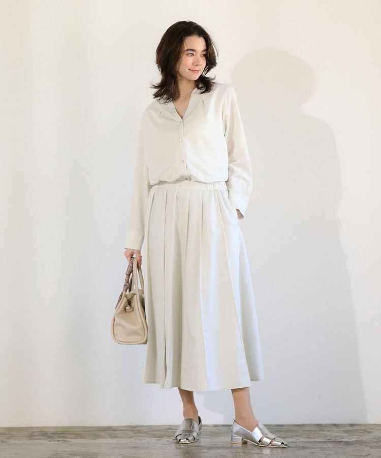 一着で決まる、上品セットアップスキッパーデザインのブラウスと、軽やかに広がるプリーツスカートがセットになったアイテムです。顔まわりをすっきり見せるネ.. |