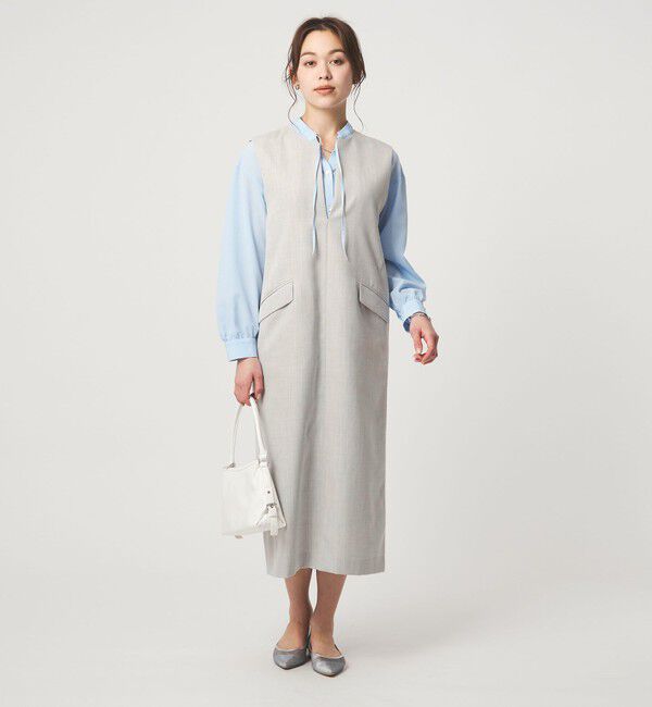 レイヤードが映える、大人のジャンパースカート■デザイン顔まわりをすっきり見せてくれる、深めのキーネックがポイントのジャンスカ。インナーとのレイヤード.. |