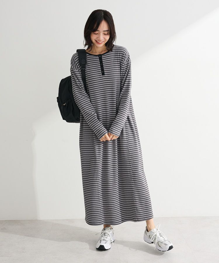一枚で決まる上品カジュアルワンピース程よく開いたヘンリーネックが顔まわりをすっきりと見せてくれるデザインです。シンプルながらもフロントのボタンがアク.. |