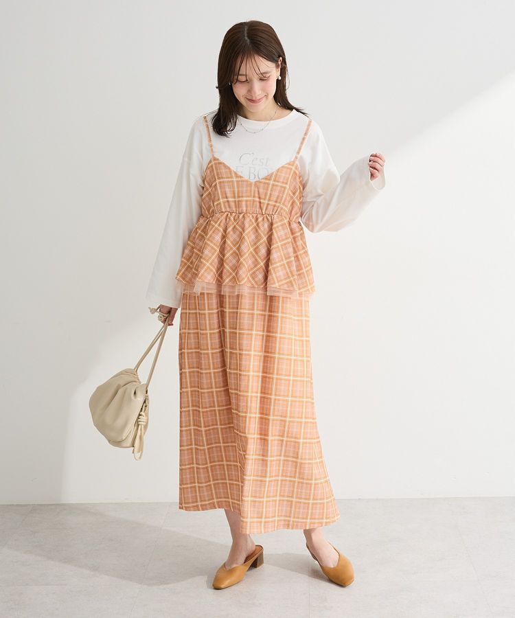 【グリーン パークス/Green Parks】 ペプラムチェックキャミワンピース