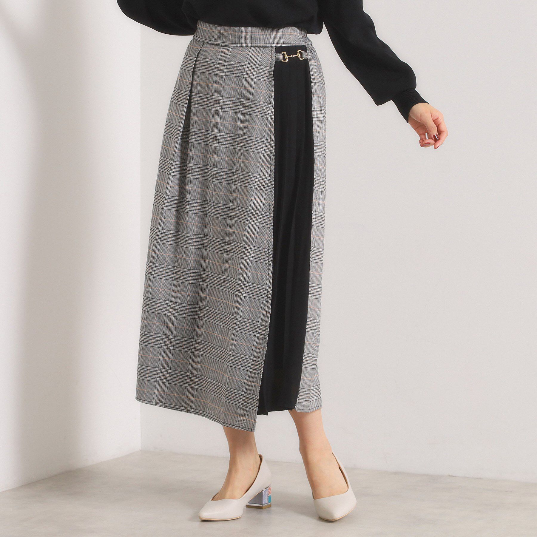【デザイン】ビットのアクセントがクラシカルなチェック柄ガウチョ。スカートライクに穿けてパンツが苦手な方にもおすすめ。ラップスカート風のデザインが可愛.. |