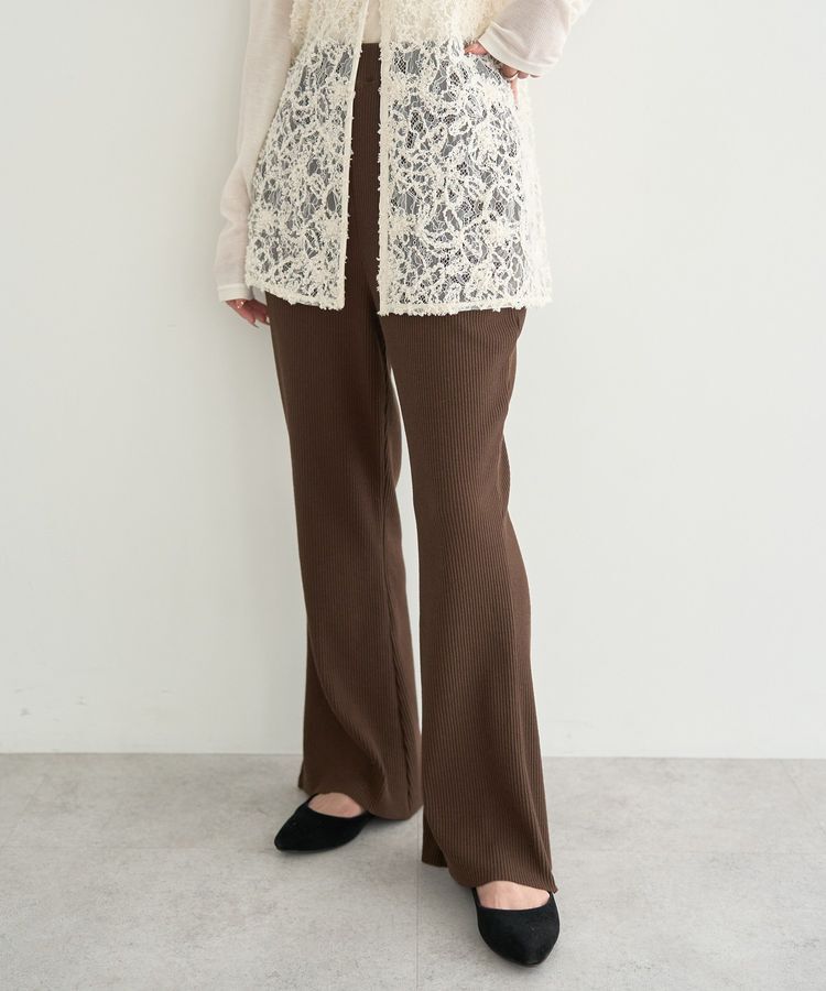 【アースミュージックアンドエコロジー/earth music&ecology】 セルフカットテレコフレアパンツ