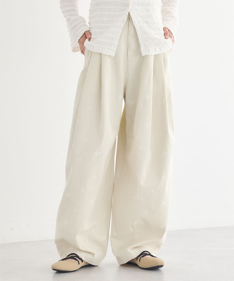 【アースミュージックアンドエコロジー/earth music&ecology】 フラワー刺繍ツイルカーブパンツ