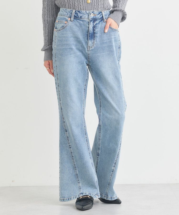 【アースミュージックアンドエコロジー/earth music&ecology】 切り替えフレアデニムパンツ