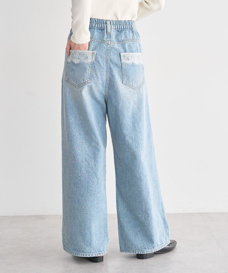 裾のカットデザインレースがポイントのデニムパンツ。トレンドライクなワイドシルエットながらフロントに寄せた縦の切り替えラインで綺麗なレッグラインを演出.. |