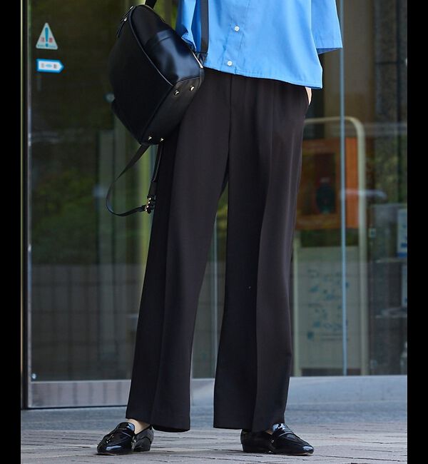【Design】きれいめからカジュアルまで幅広い着こなしに活躍するセミワイドパンツ。ストレートラインのシルエットが美しい、太すぎないワイドパンツです。タッ.. |