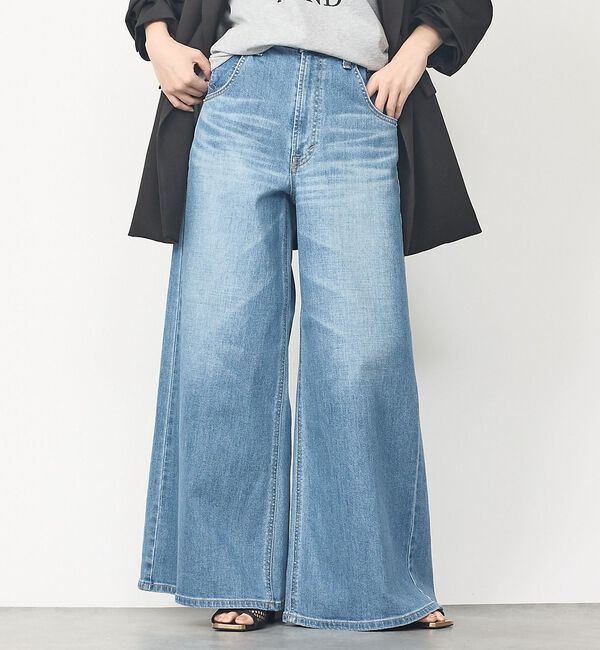 【Design】ハイライズのスーパーワイドシルエットデニム。ポイントは、ウエストとワタリの差寸。ウエストはキュッと高めの位置でやや小さめに設定し、ワタリか.. |