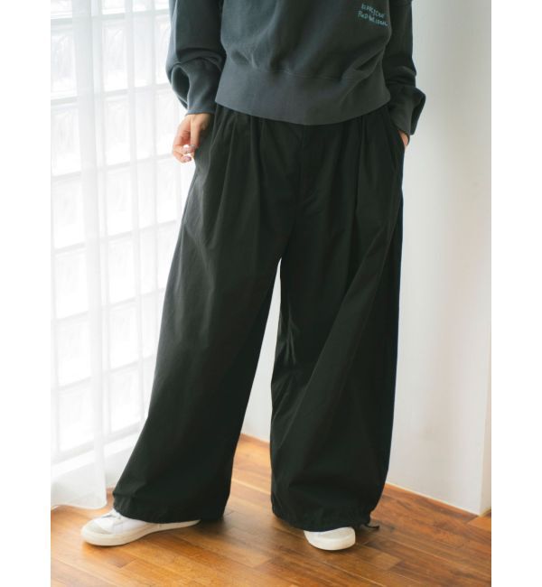 程よいボリュームとゆるやかなワイドシルエットが魅力のドローストリングパンツ ■デザイン 裾のドローコードでシルエットを調整できるので、 スタイリングに.. |