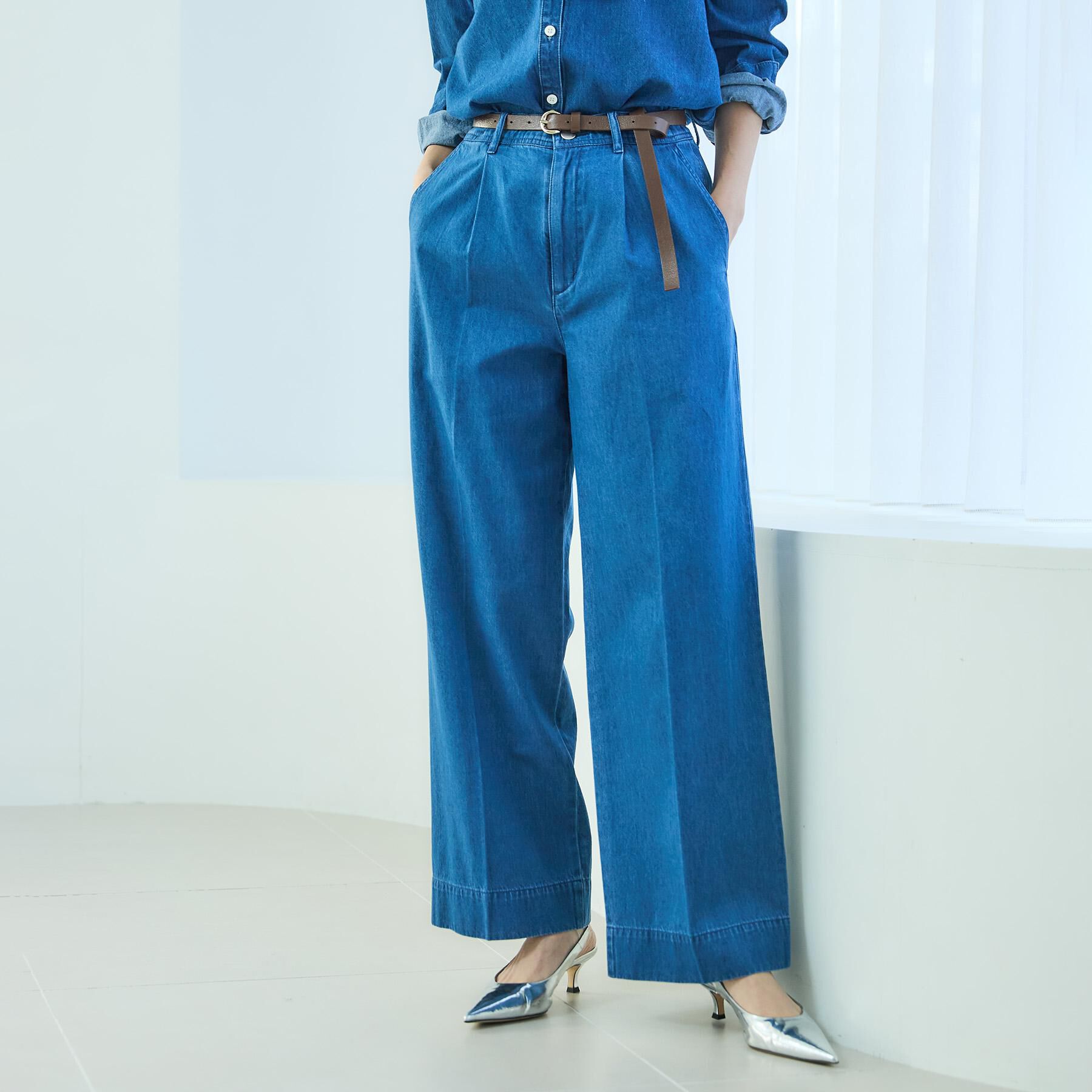 【デザイン】トレンド感たっぷりのタックワイドシルエットに、快適な穿き心地をプラス。デニム見え素材が、上品で動きやすい軽快な1本を叶えます。普段使いか.. |