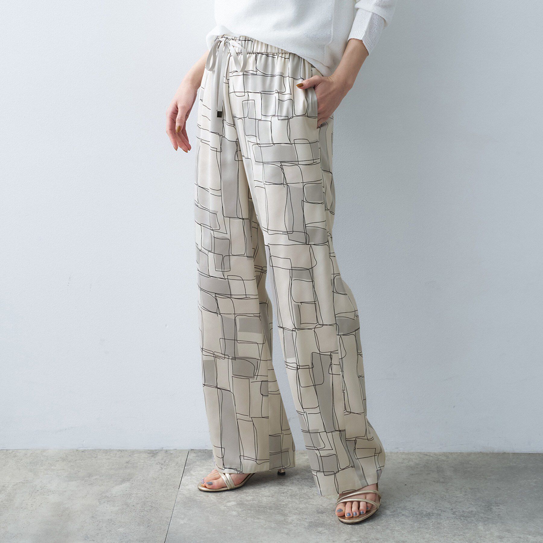【デザイン】ブロッキングアートペイントが目を引くイージーパンツ。クリーンなシルエットがカジュアルながらも上品な印象を与えます。ウエストはドローストリ.. |