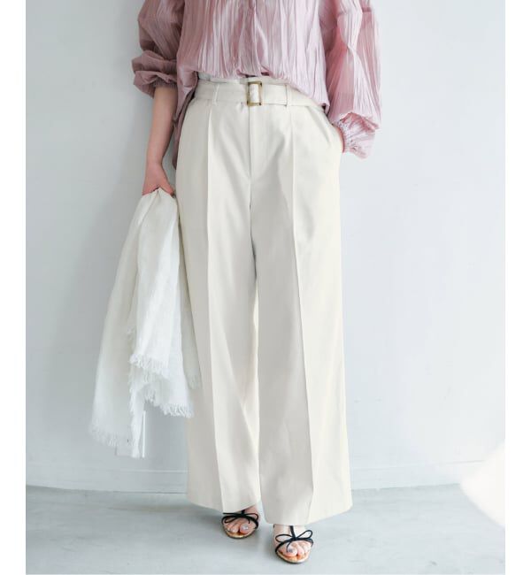 【2026SS】IENA共地ベルトがアクセントになった、ハイウエストデザインのワイドチノパンツ。すとんと落ちるシルエットが脚をすらりと長く見せ、スタイリングに.. |