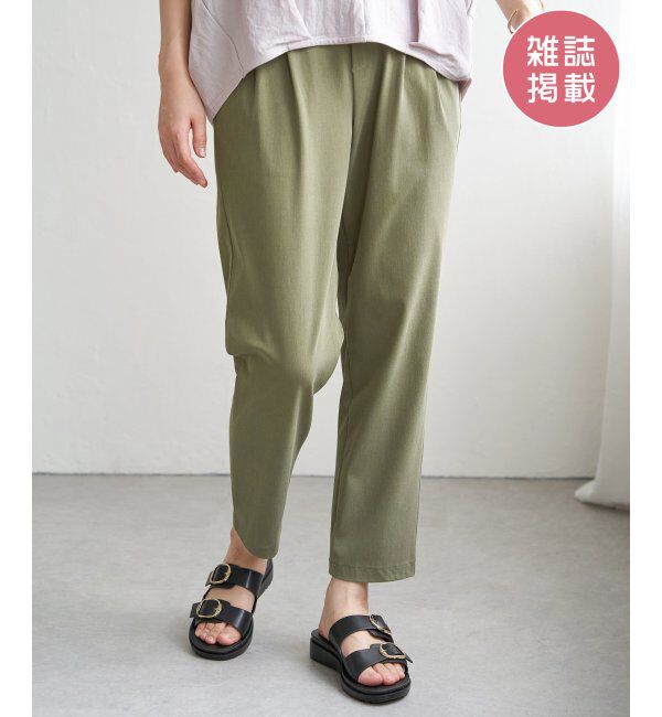 【雑誌InRed(宝島社)6月号掲載】ひんやりとした冷感素材が心地よく、蒸し暑い日も快適に過ごせるテーパードパンツが登場!伸縮性のあるカット素材で、きちとん.. |