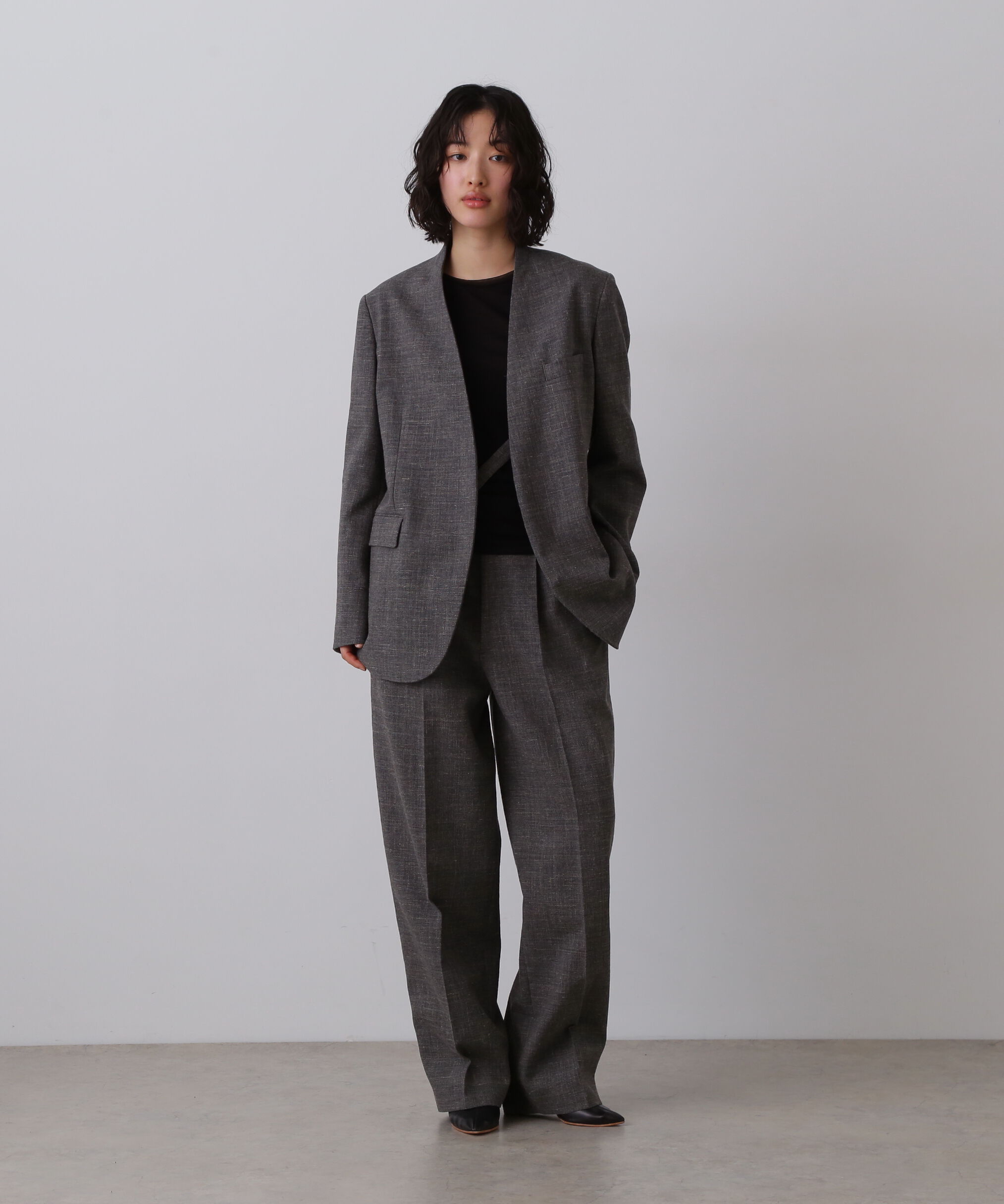 SUPER120’Sウールの細番手をガス焼きしたボイル糸を使用し、サマーウールのような上品な清涼感を実現。あえてワッシャー加工を施すことで、自然な風合いと繊細.. |