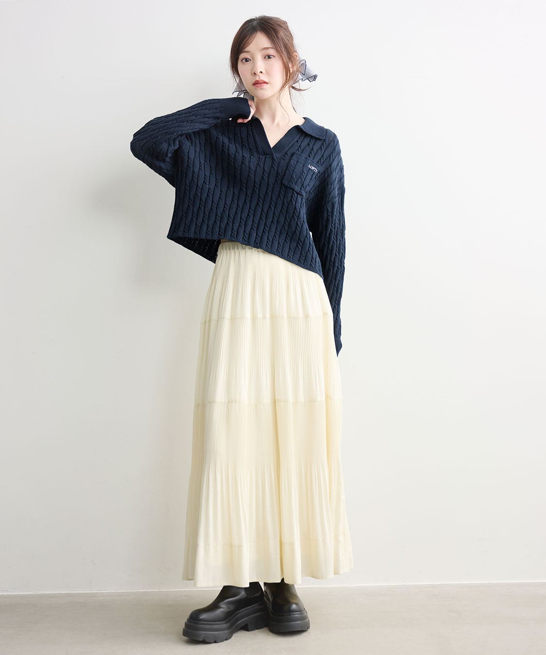 滑らかなタッチと程よいハリ感で軽やかな動きを演出したスカートです。細目のプリーツなので腰回りが広がりすぎずスッキリと着用いただけます。ティアードの幅.. |
