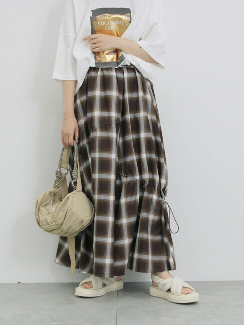 品のあるチェック柄で仕立てたギャザースカート。裏地付きで透ける心配もなく、両サイドにはドロストを設け、シルエットチェンジも楽しめます。合わせるトップ.. |