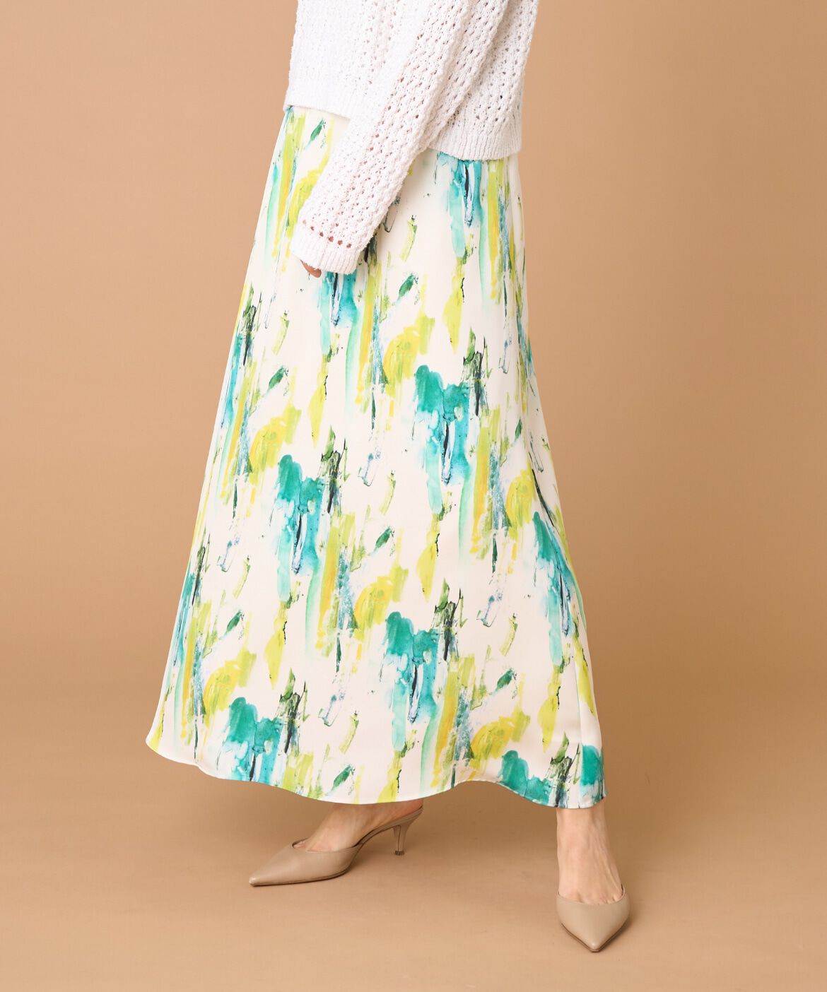 ■デザイン適度なフィット感が美しいシルエットを作り出す、リネン素材のバイヤススカート。フロント生地をバイヤスに取っているので、体に沿いながらラインを.. |
