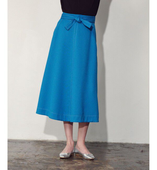 【allureville 2024 spring&summer】リネンライクな素材に裏全面に芯を張って立体感を持たせたフレアースカートです。配色のステッチワークやウエスト.. |