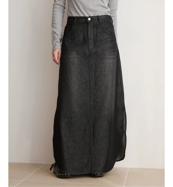 【2026SS】IENA LA BOUCLEロング丈のIラインシルエットがこなれ感のあるデニムスカート。サイドに丸くカットしたラウンドテールスリットを入れることで、軽や.. |
