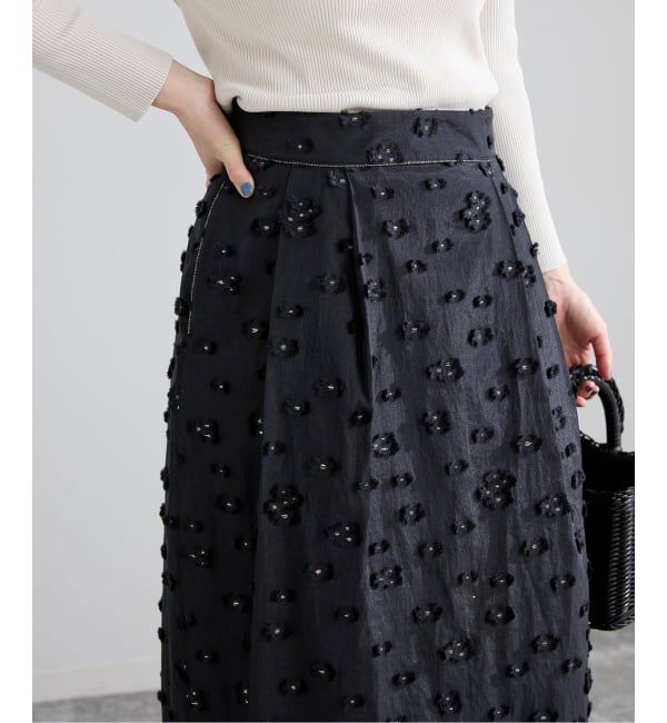 【2026SS】IENA立体感のあるフラワージャカード素材を使用した、存在感のあるタックスカート。シアー感のあるベース生地に、凹凸のある花柄モチーフを重ねるこ.. |