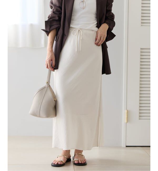 【2026SS】IENA凹凸感のあるサッカー組織のサテン素材を使用した、アンティークライクな表情が魅力のイージースカート。光沢を抑えた奥行きのある風合いが、落.. |