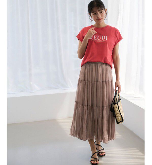 【エニィスィス/ANY SIS】 【洗える】シアーワッシャーティアード スカート