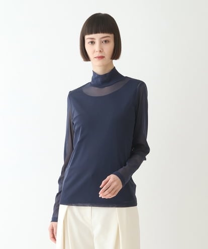 HIROKO BIS GRANDE(ヒロコ ビス グランデ) 【大きいサイズ】チュールハイネックプルオーバー /洗濯機で洗える ネイビー/紺 13