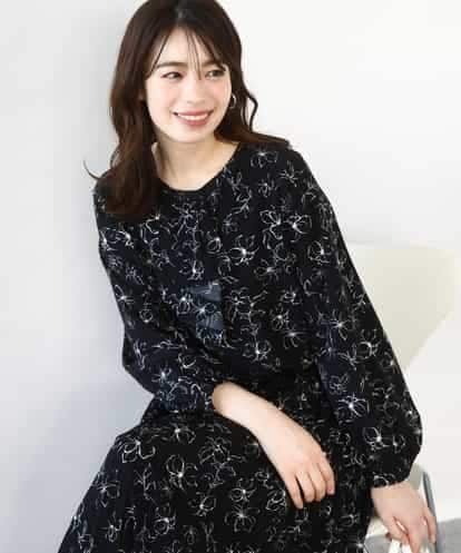 レディライクで華やかなプリントブラウス ■デザイン やわらかな線画タッチの花柄とボウタイ風デザインが女性らしさを引き立てるブラウス。程よい開き具合の衿.. |