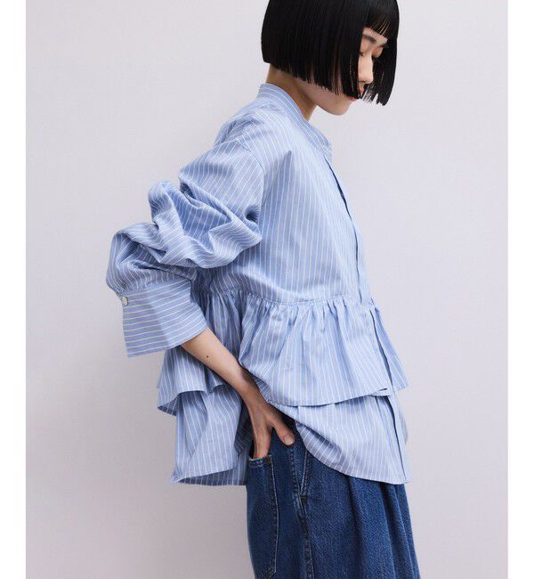 ◇2025春夏◇ADAM ET ROPE' FEMME【Material】コットン混のハリのあるシャツ地素材。【Design】ランダムなシャーリングギャザーや共地フリルなどを施したデザイ.. |