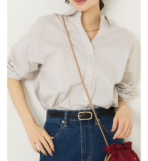 【Design】ゆったりとしたサイズ感のオーバーシャツ。1枚で羽織りにもなる便利な1着。【Fabric】滑らかで程よい張り感のあるブロード生地を使用。無地とストラ.. |