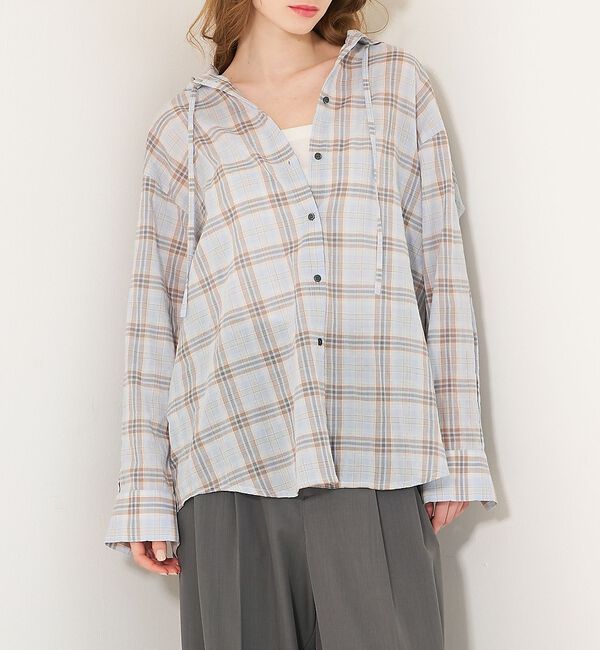 【アバハウス マヴィ/abahouse mavie】 【シアー素材】チェックフードシャツ/春服/夏服/ゆったり/羽織り