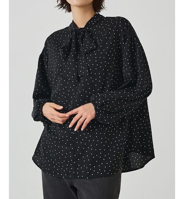 【デザインと特徴】 光沢感のあるドット柄のドビー生地を採用した、上品な雰囲気を纏うボウタイブラウス。 前後2WAY着用可能にすることで、ボウタイを後ろにハ.. |